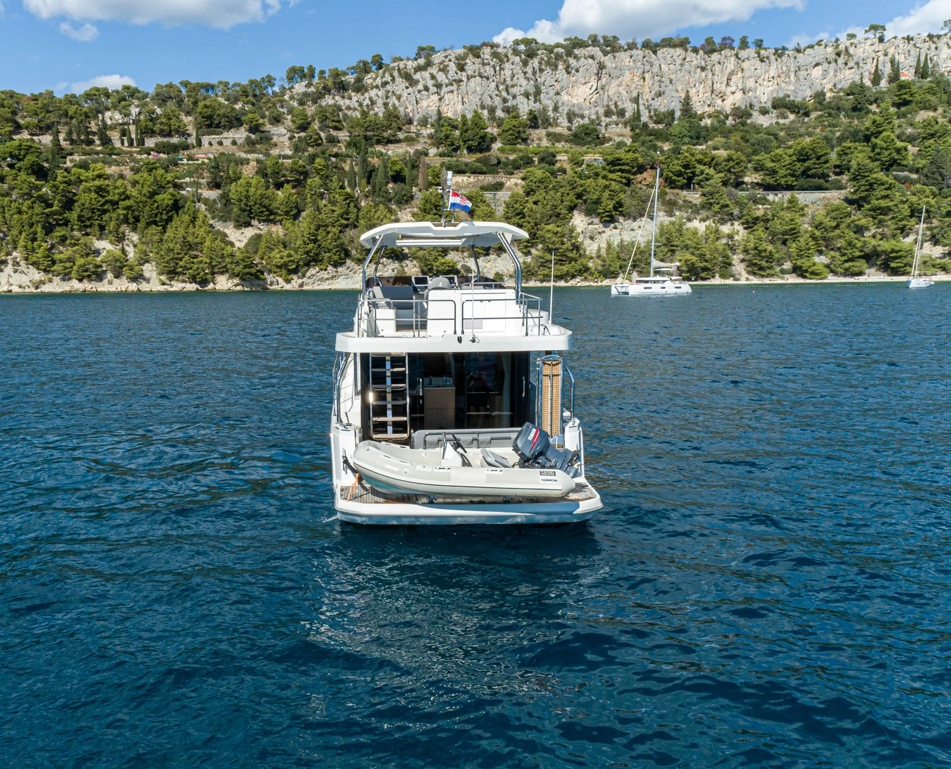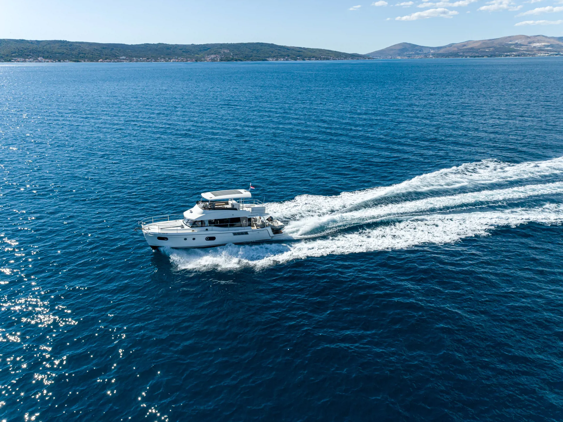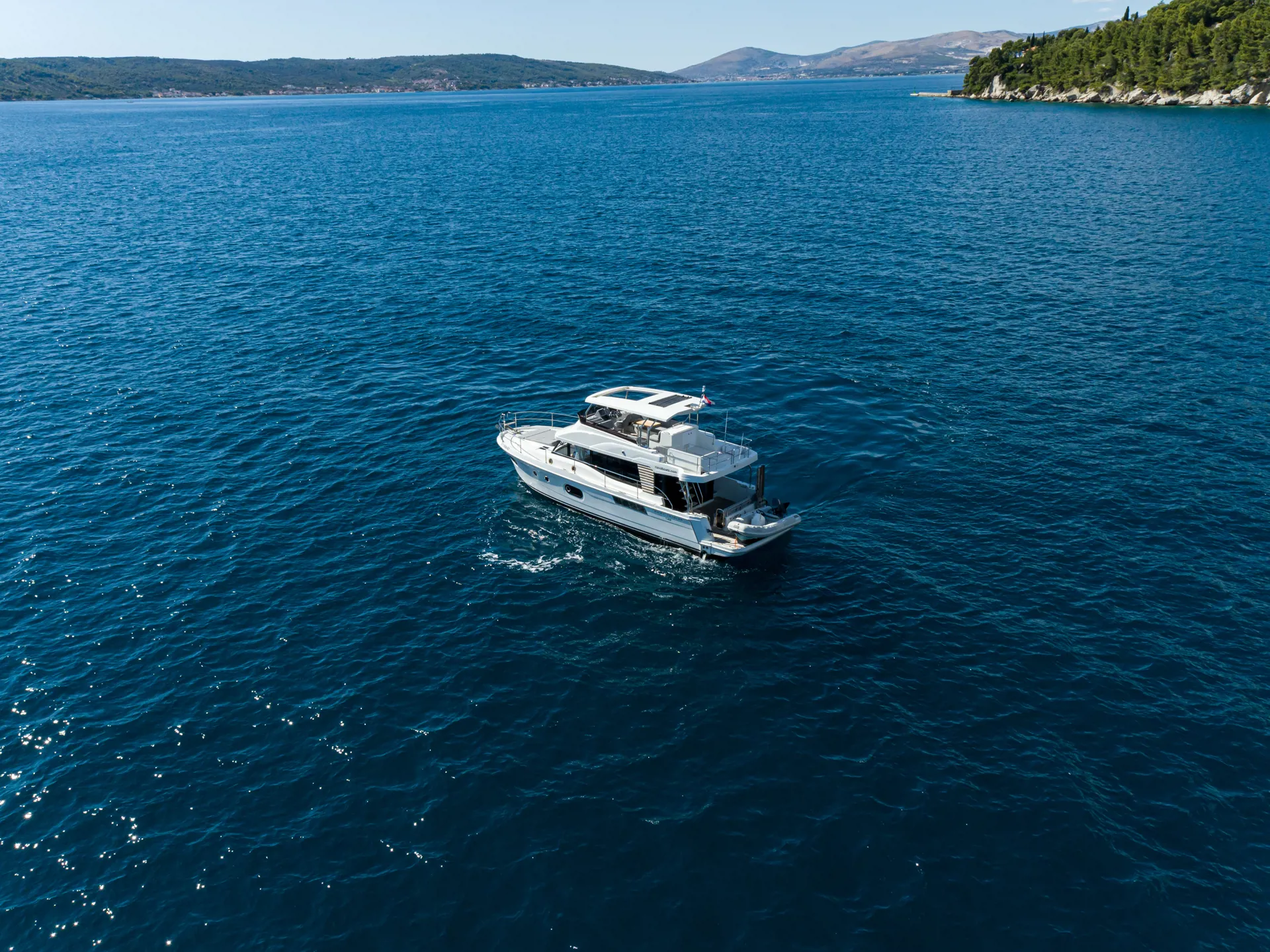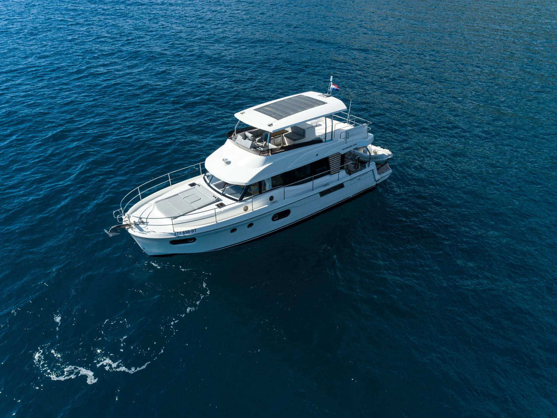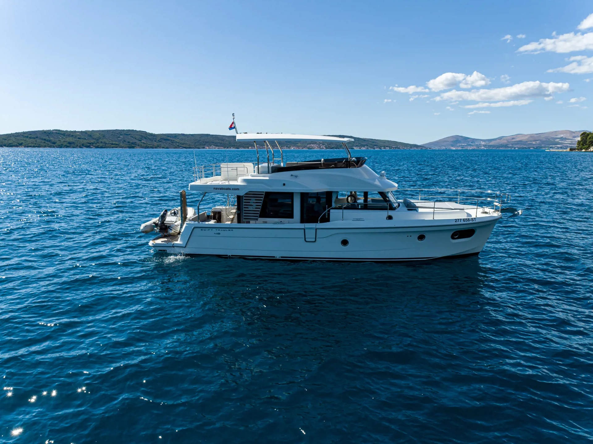 The new model Swift Trawler 48 can easily accommodate up to 6 passengers in 3 cabins and 2 bathrooms. It has a fully equipped kitchen and cozy dining room, generator, air conditioner and much more. Catch some summer sun and hang out in the flybridge seating area or sunbathe on the bow sun loungers.