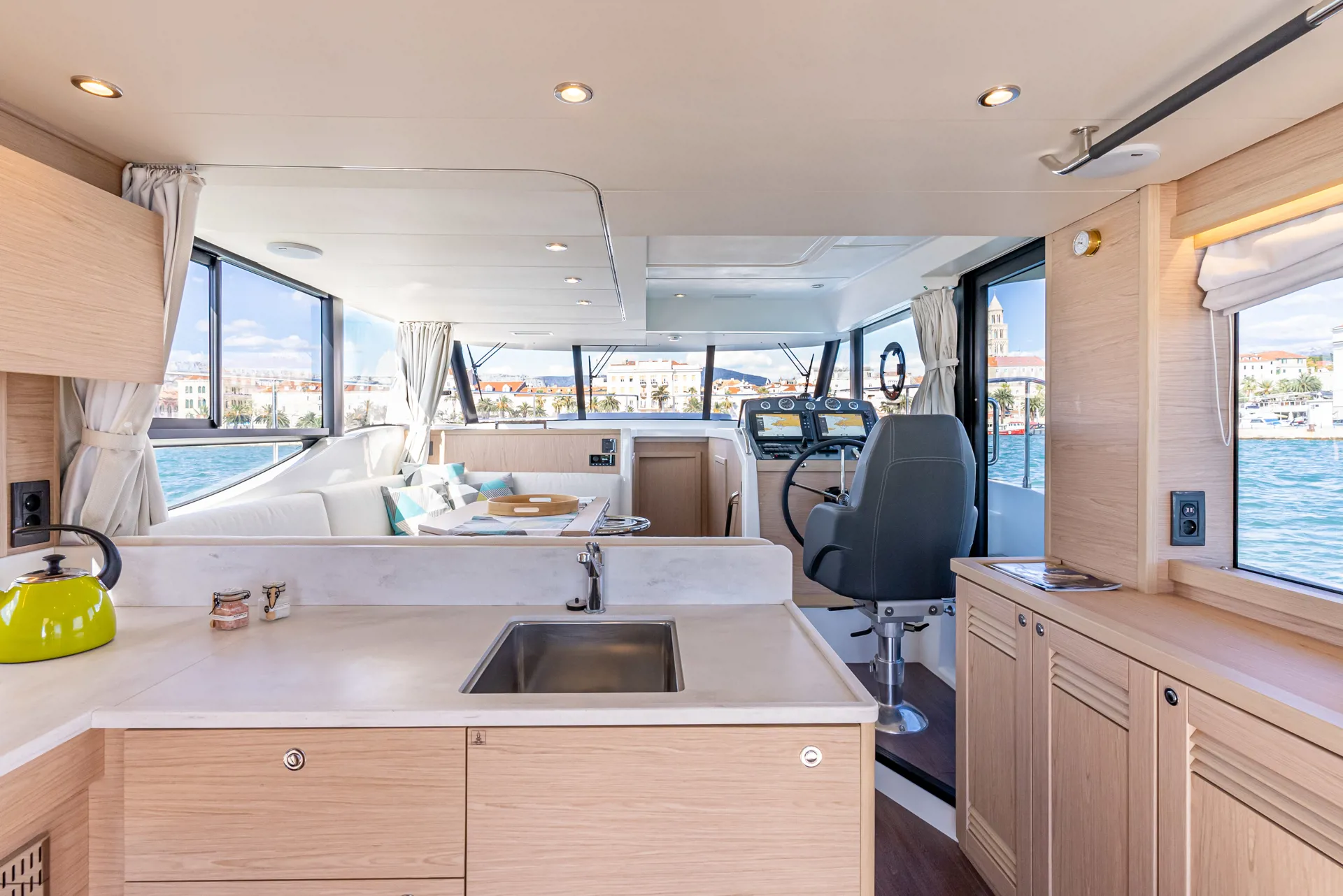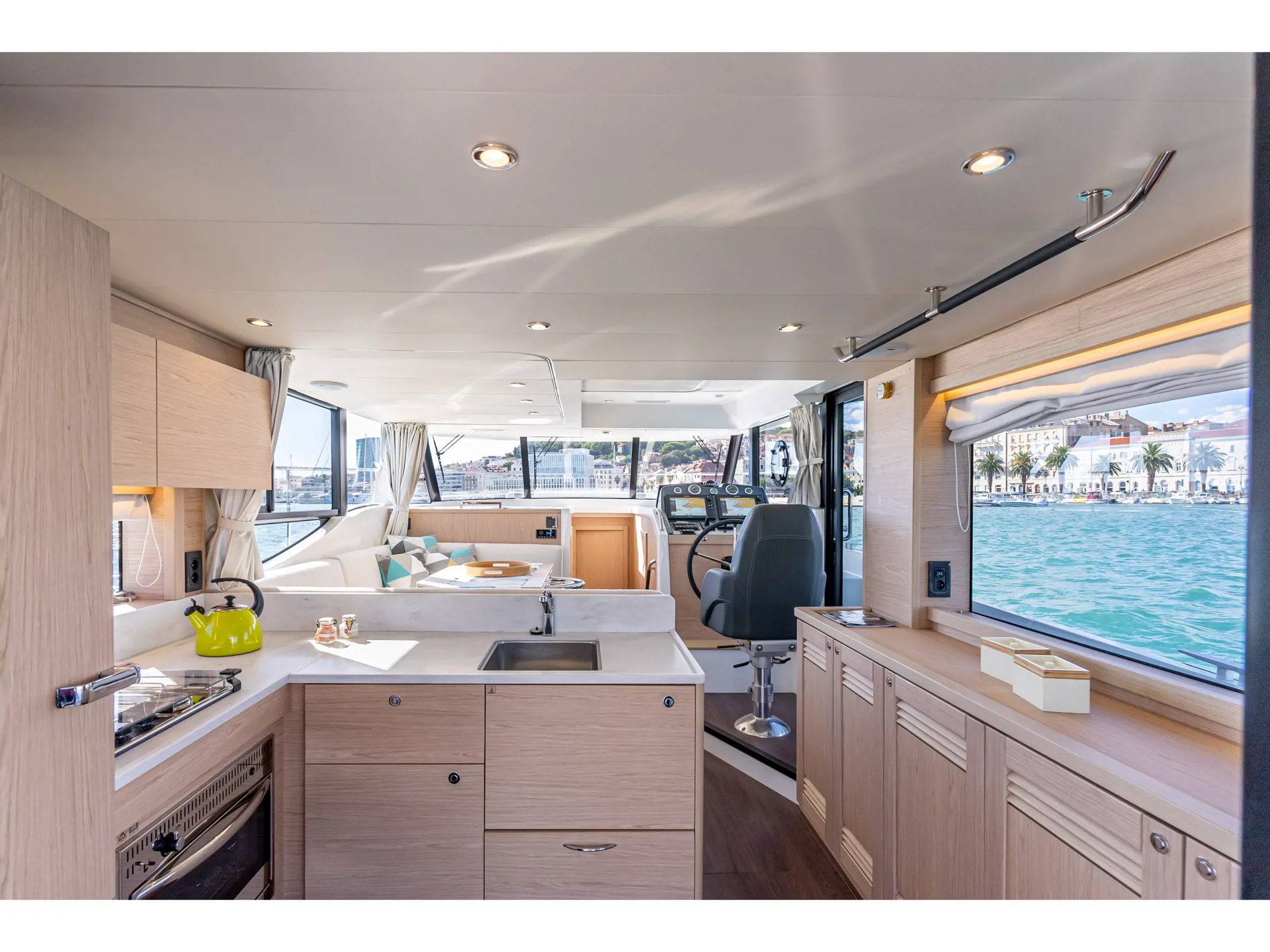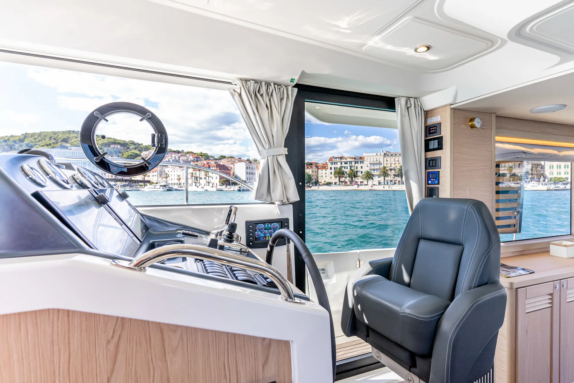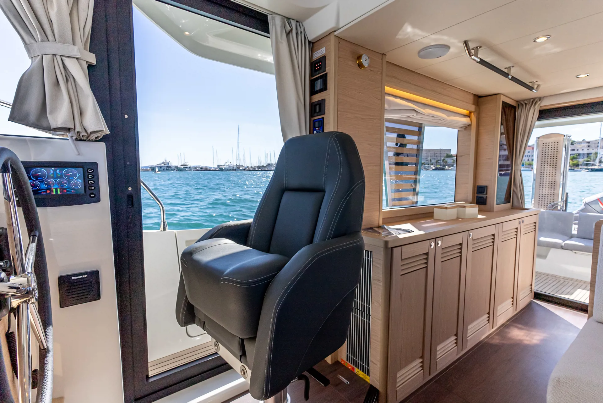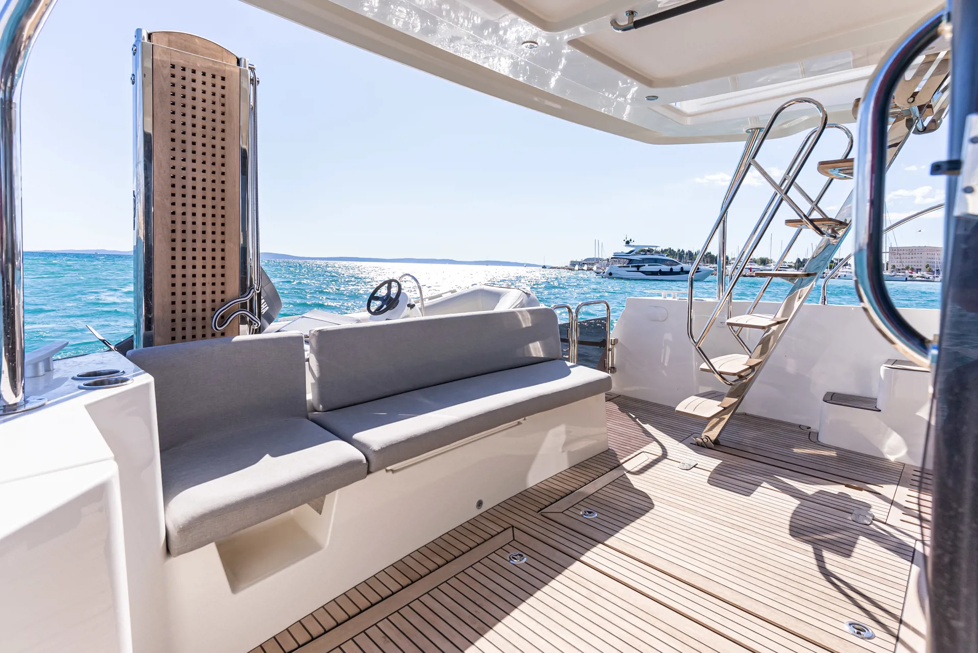 The new model Swift Trawler 48 can easily accommodate up to 6 passengers in 3 cabins and 2 bathrooms. It has a fully equipped kitchen and cozy dining room, generator, air conditioner and much more. Catch some summer sun and hang out in the flybridge seating area or sunbathe on the bow sun loungers.