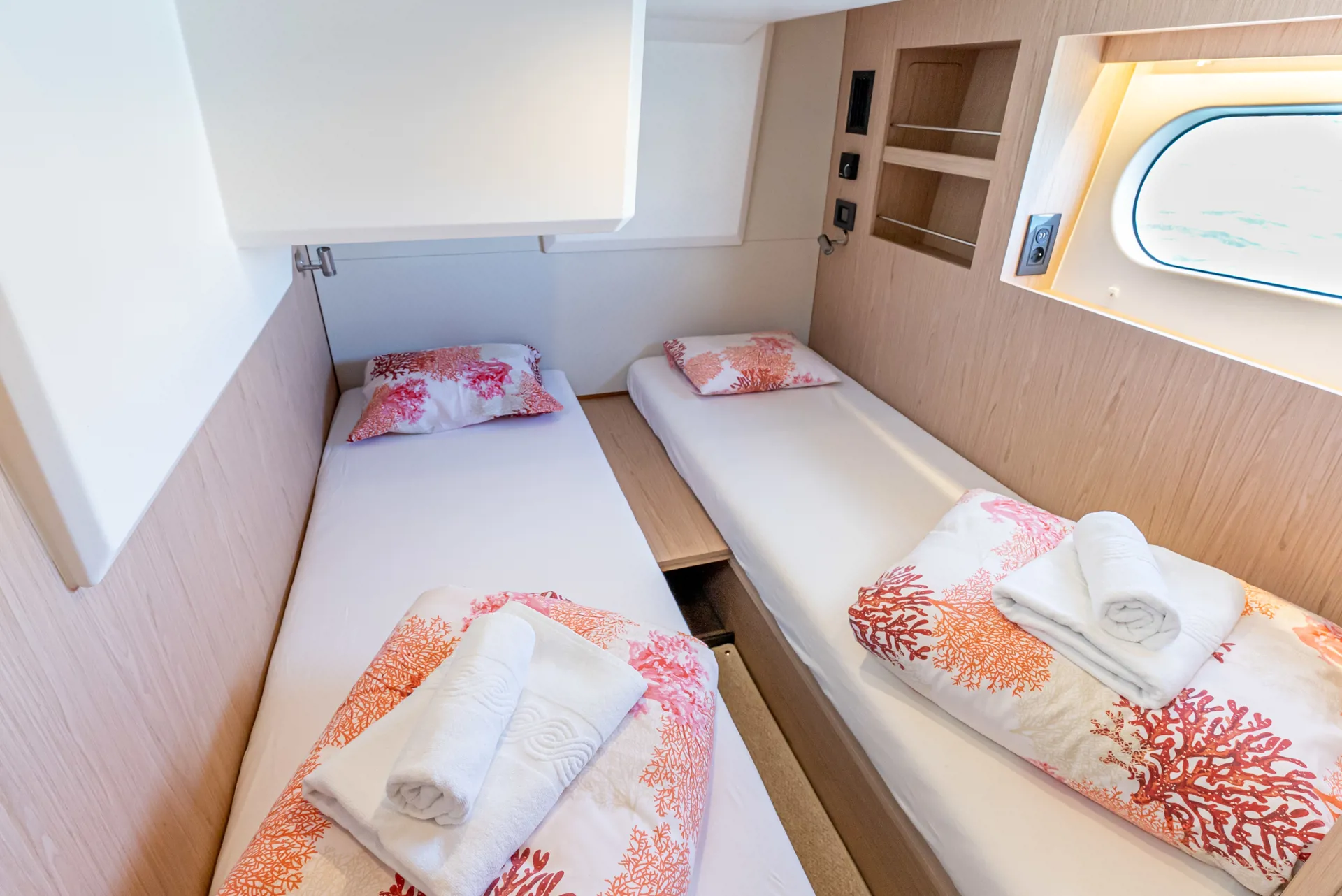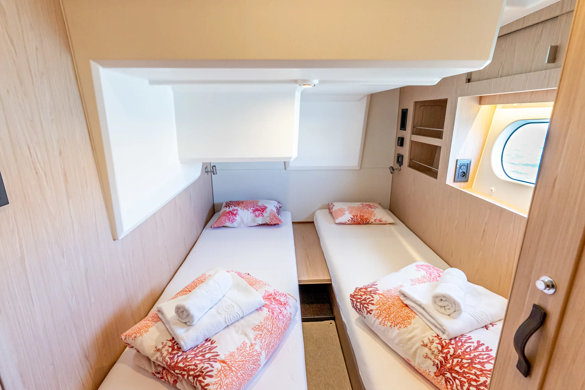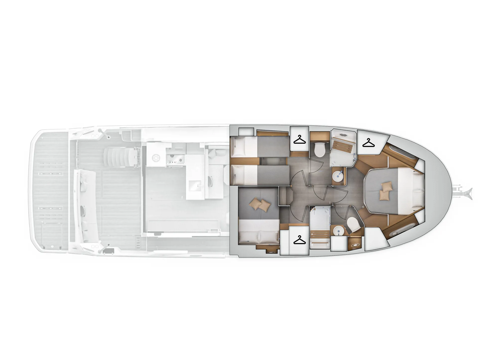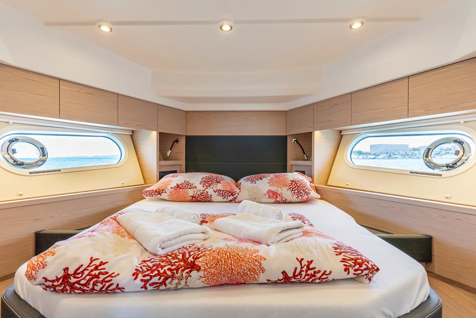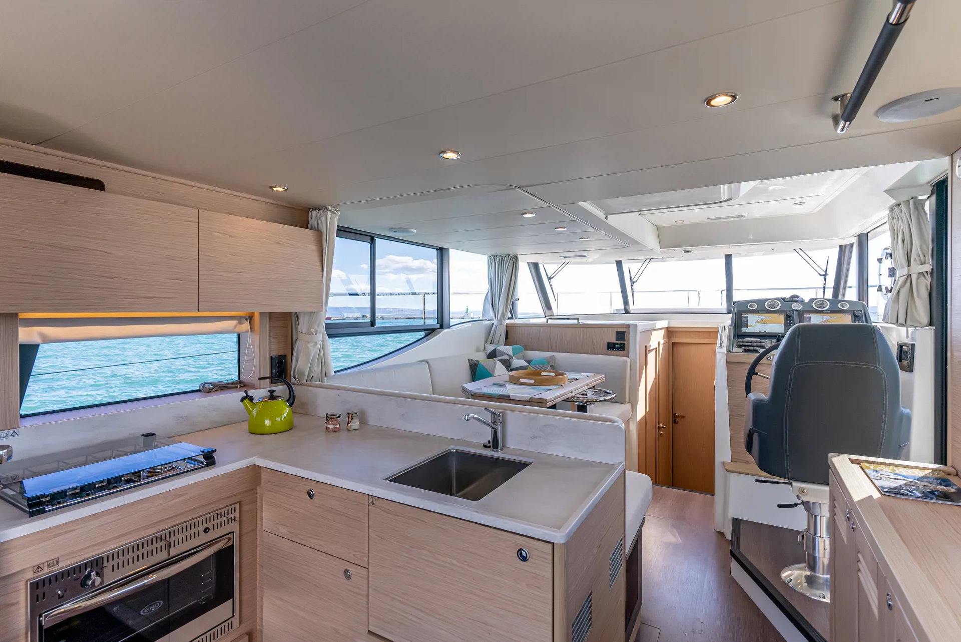 The new model Swift Trawler 48 can easily accommodate up to 6 passengers in 3 cabins and 2 bathrooms. It has a fully equipped kitchen and cozy dining room, generator, air conditioner and much more. Catch some summer sun and hang out in the flybridge seating area or sunbathe on the bow sun loungers.